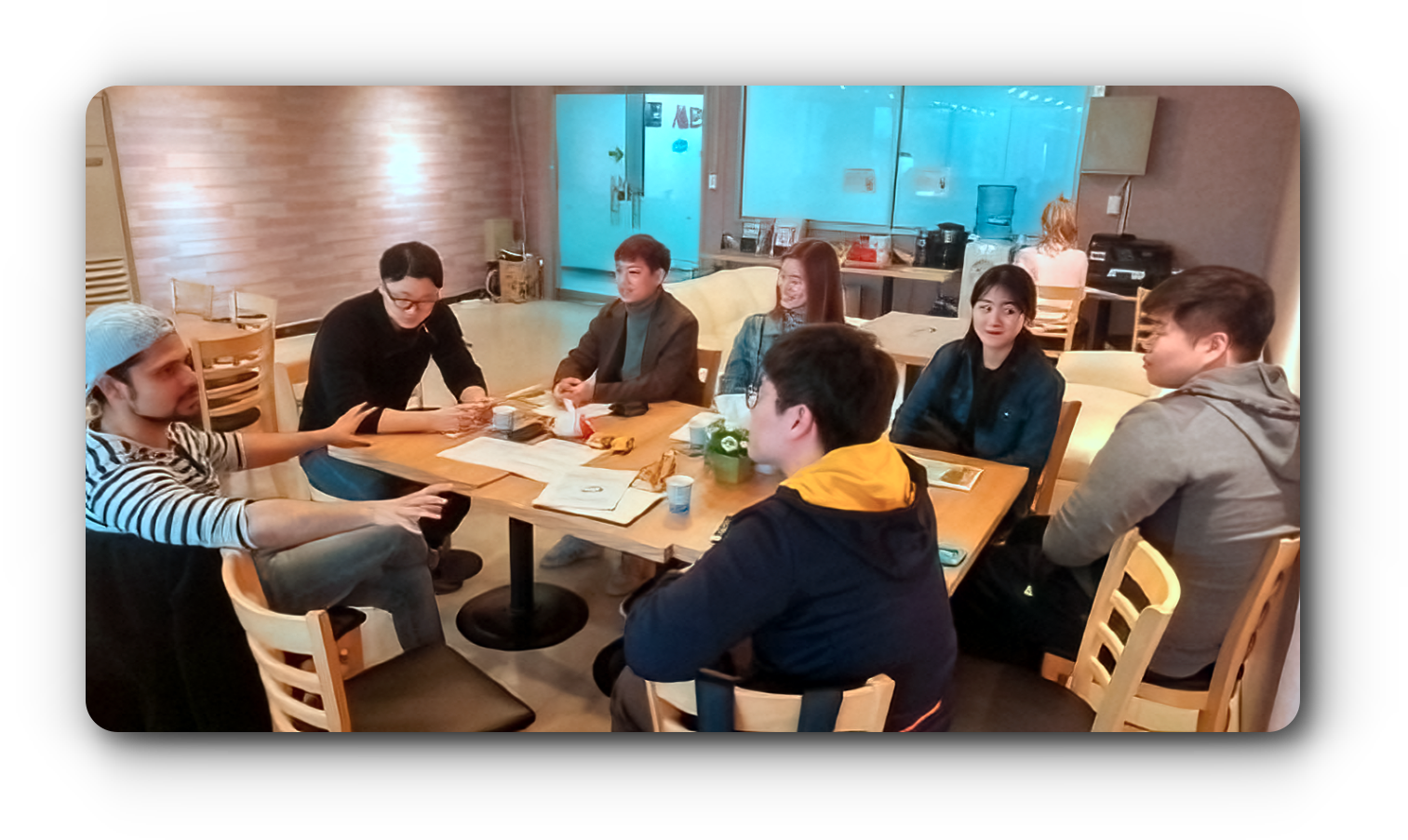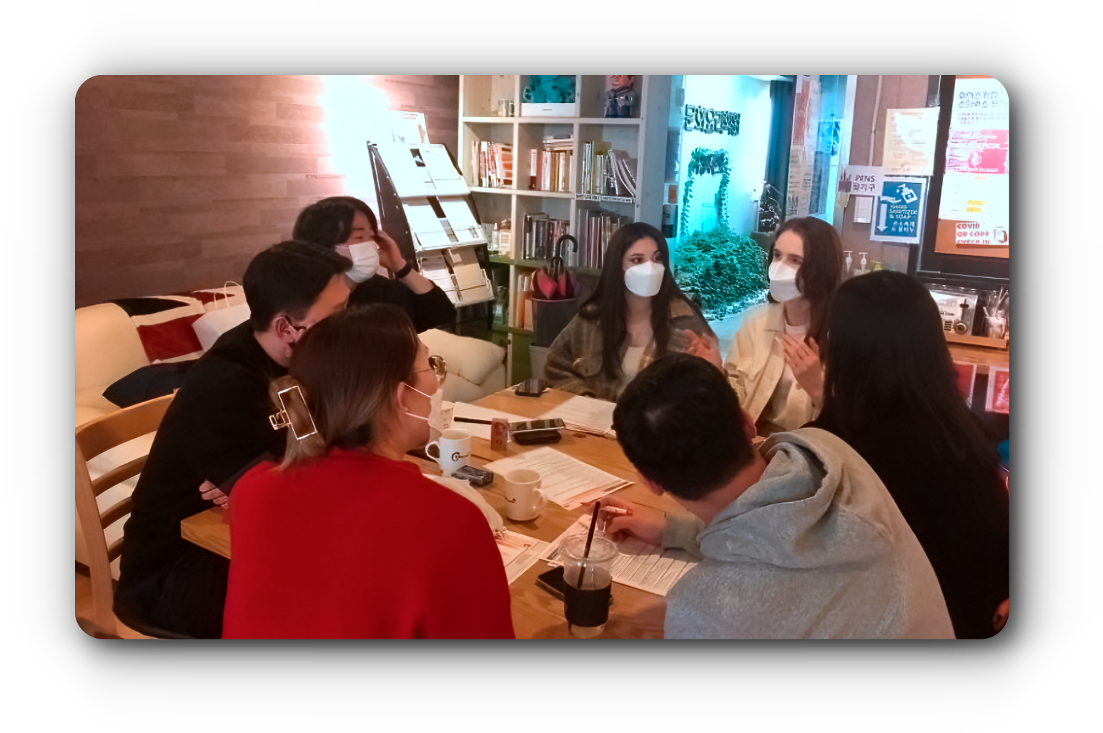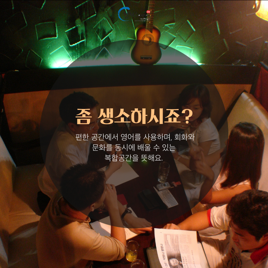 편한 공간에서 영어를 사용할 수 있고, 회화와 문화를 배울 수 있는 복합 문화공간을 뜻해요.