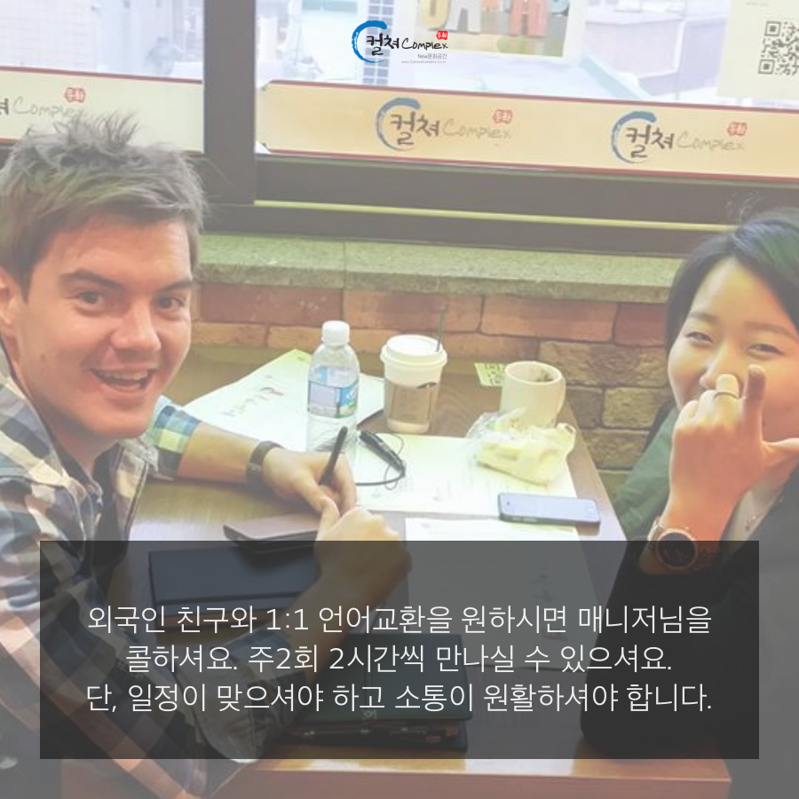 외국인친구와 1:1 언어교환을 원하시면 매니저님을 콜하셔요.