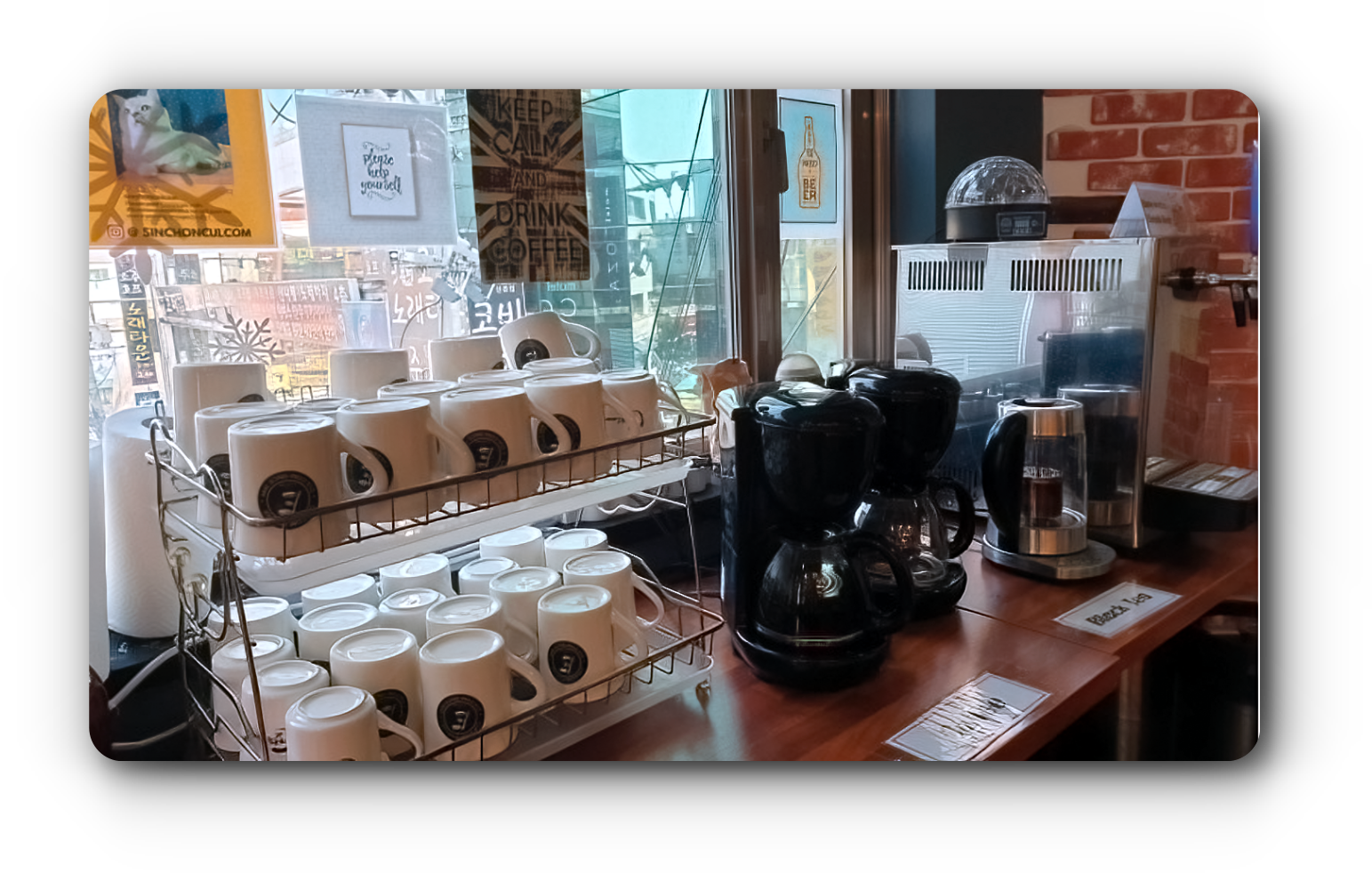 공간을 활용할 수 있다른 점이예요. 지점에서 기본적으로 제공하는 커피, 차, 맥주, 빵,