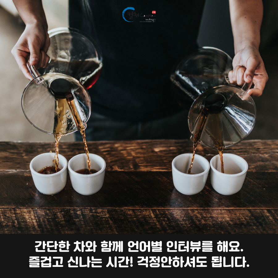 간단한 차와 함께 언어별 인터뷰를 처음에 받게되세요.