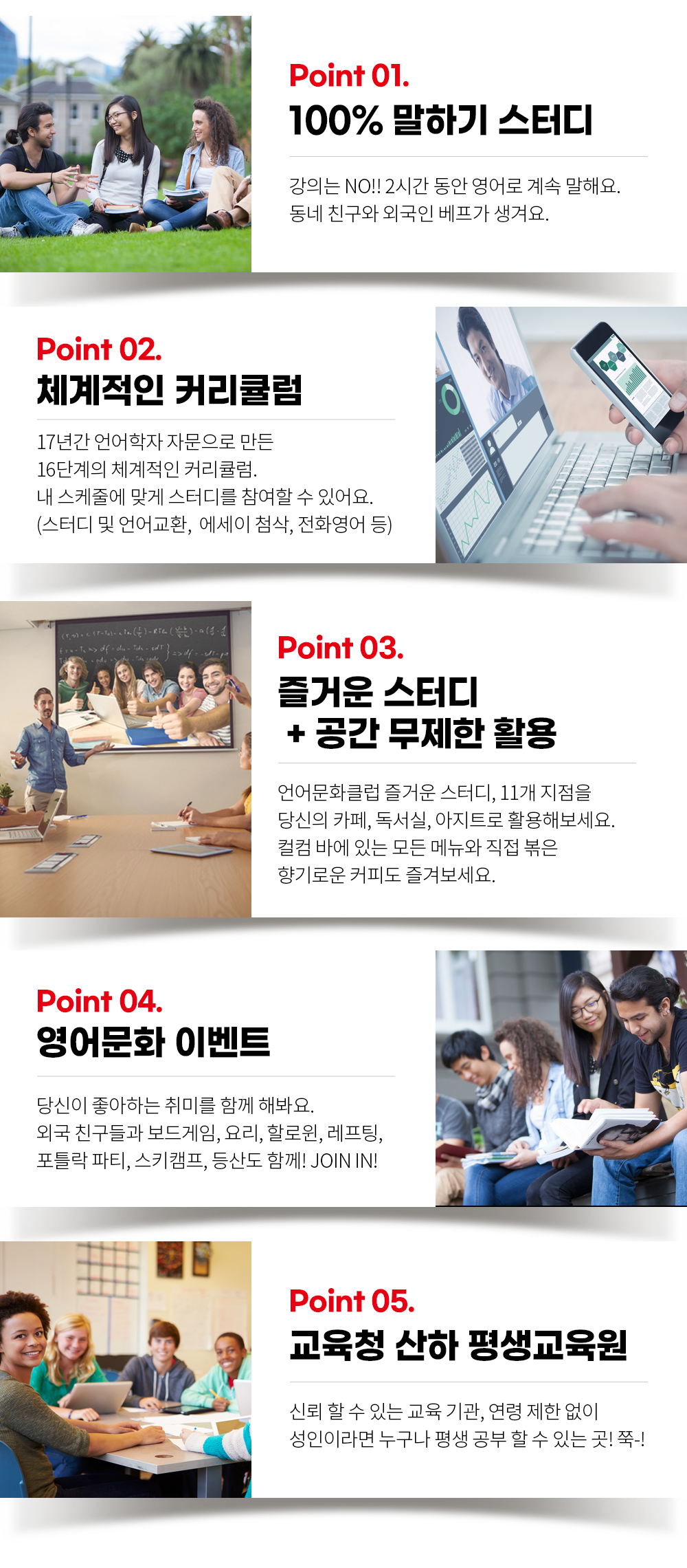 Point 01. 100% 말하기 스터디로 진행됩니다.